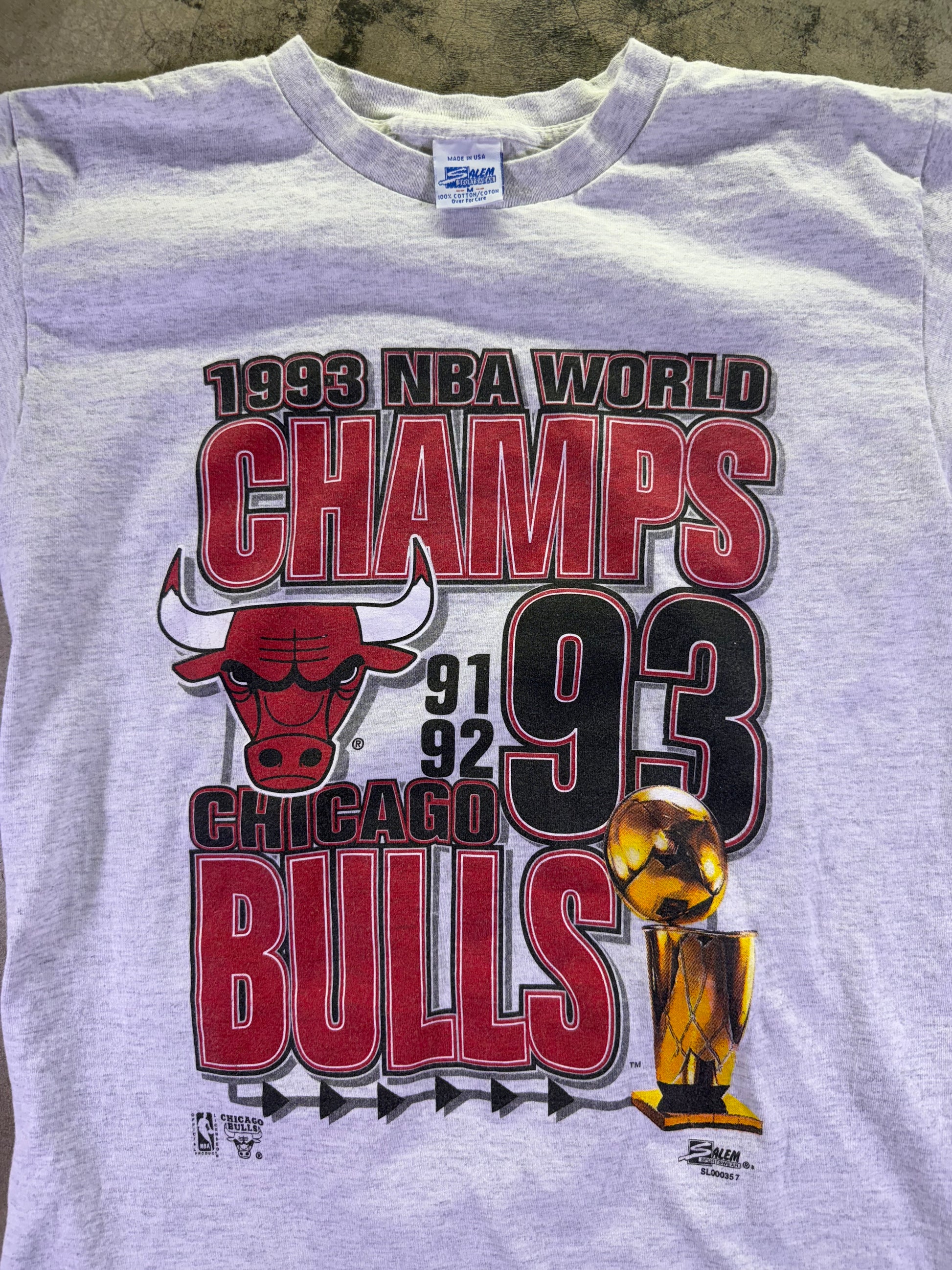 (M)1993 Salem Sportswear x NBA World Champions Chicago Bulls Short Sleeve T Shirt