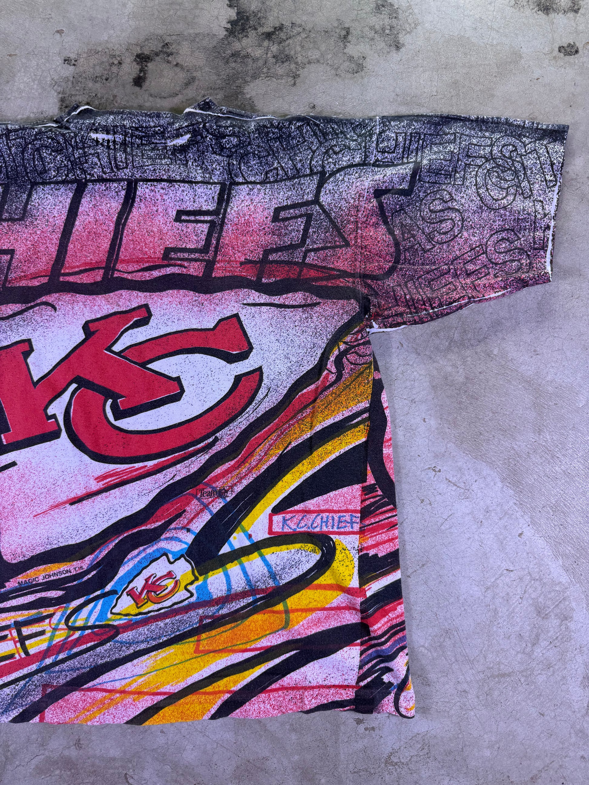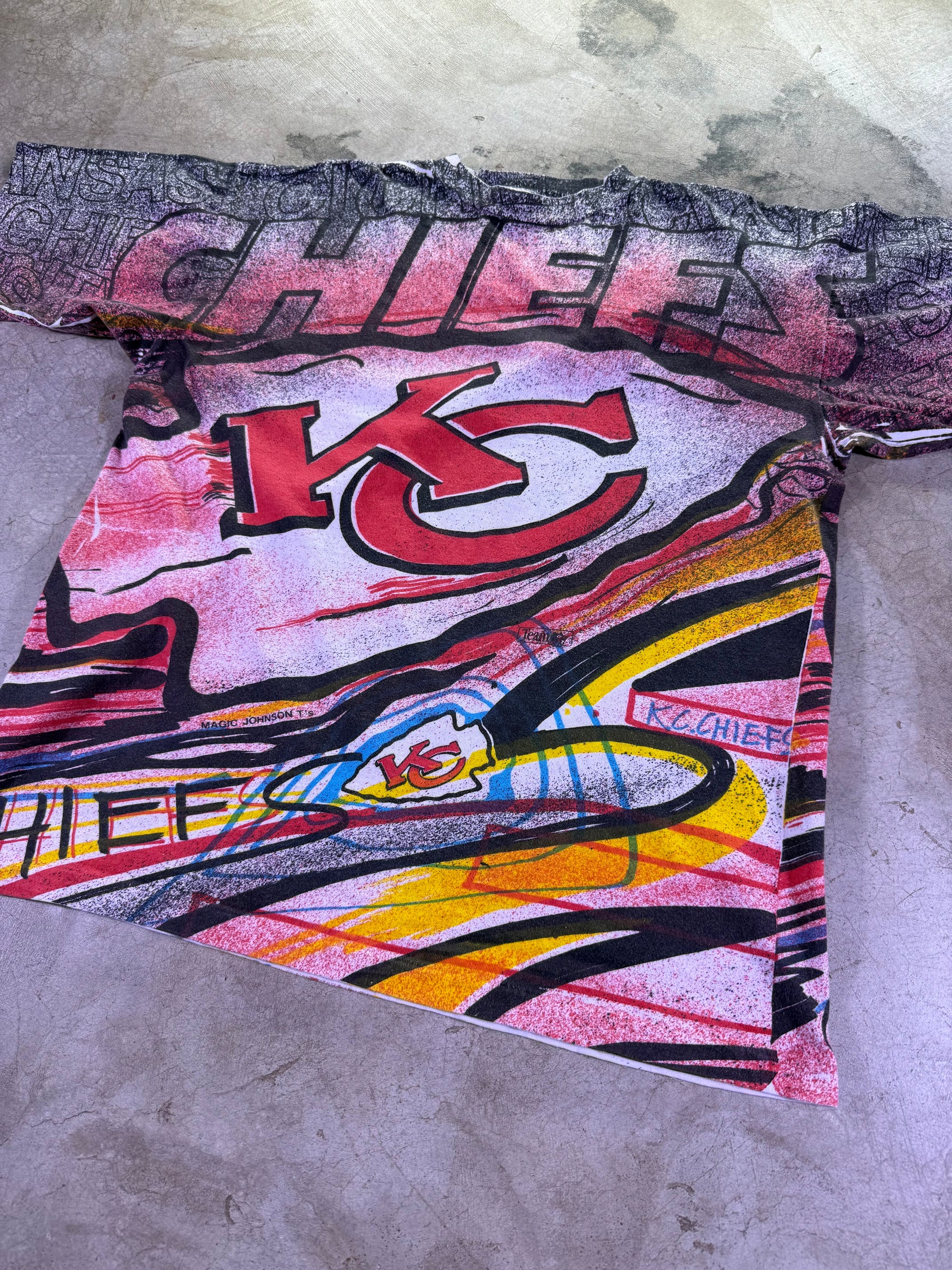 medium Magic Johnson T’s x NFL KC Chiefs all over print t shirt single stitch