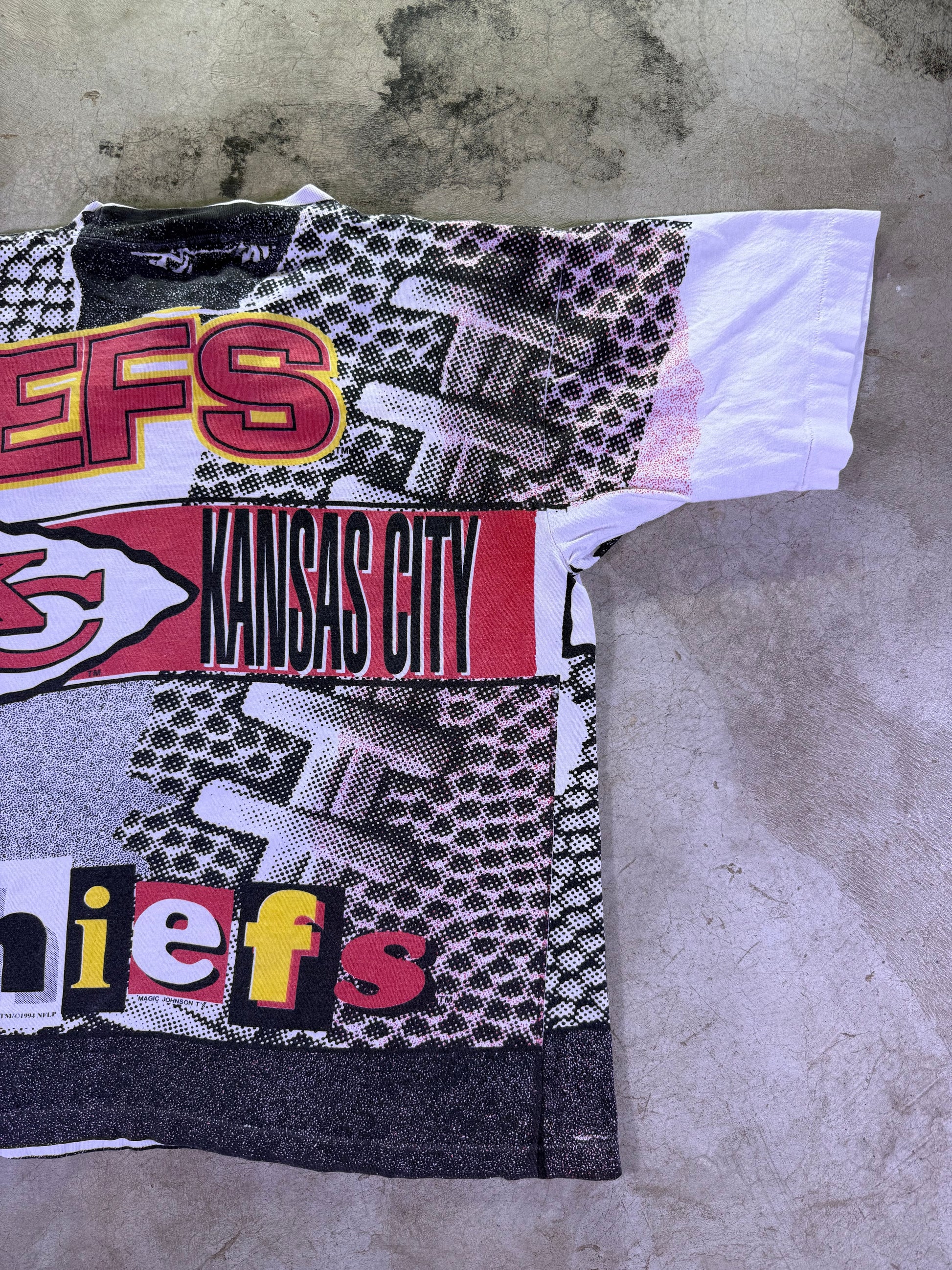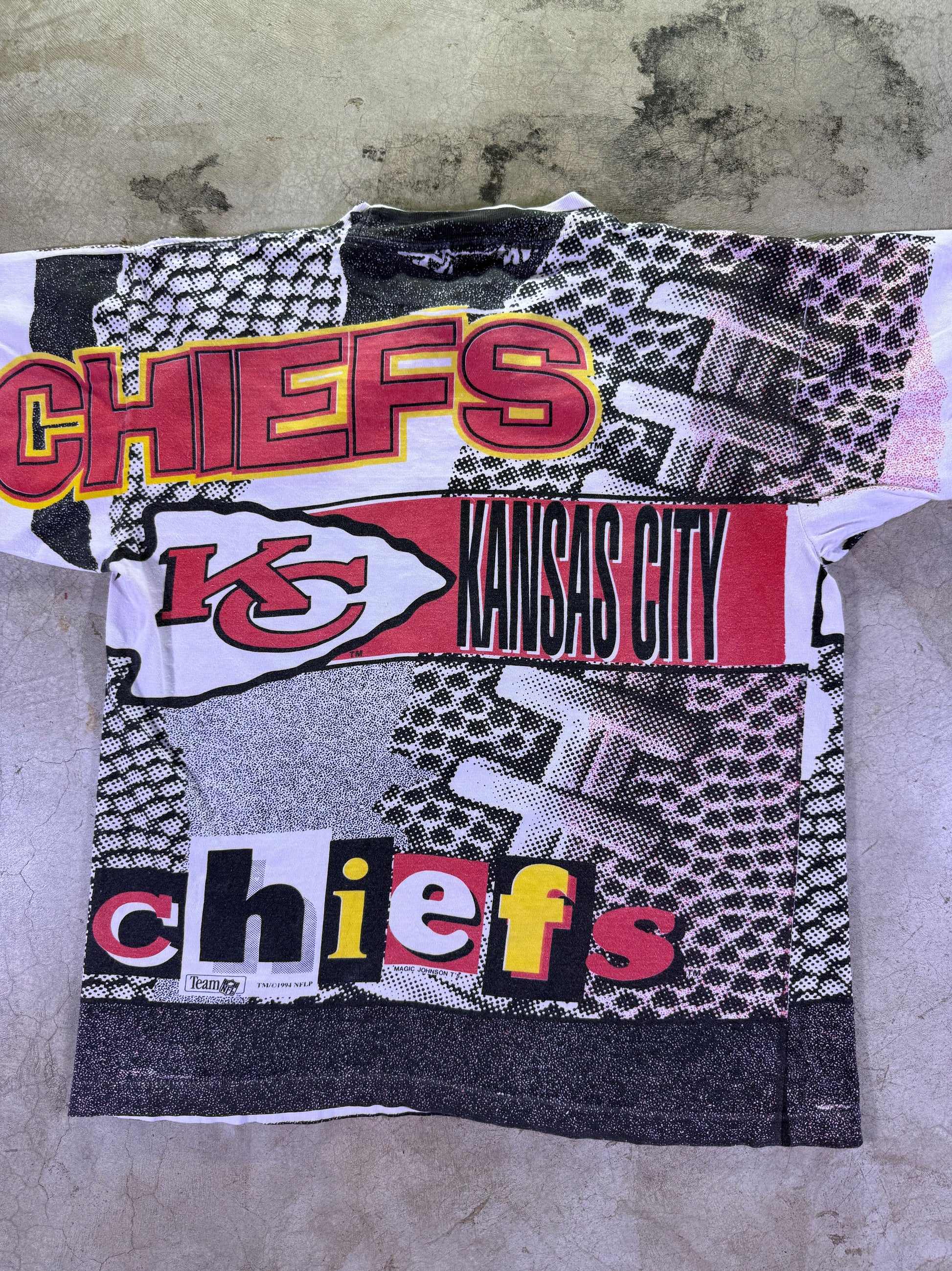 (S) 1994 Magic Johnson T’s x NFL KC Chiefs all over print t shirt